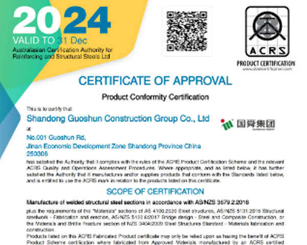 近日,國舜集團成功獲得澳大利亞與新西蘭認證鋼鐵產品的權威認證——ACRS 3679.2認證,成為中國第一家通過該認證的H型鋼企業。