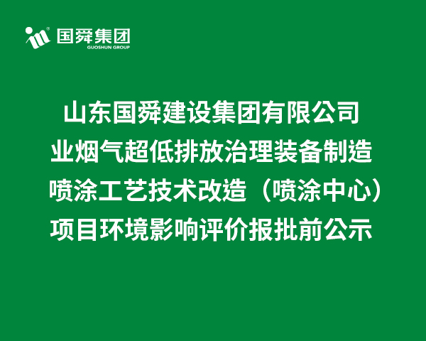山東國舜建設集團有限公司工業煙氣超低排放治理裝備制造噴涂工藝技術改造(噴涂中心)項目環境影響評價報批前公示